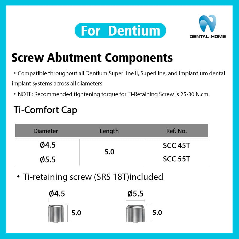 ·Совместимы со всеми системами дентальных имплантатов Dentium SuperLine ll, SuperLine и Implantium всех диаметров ·ПРИМЕЧАНИЕ: Рекомендуемый момент затяжки для титанового...